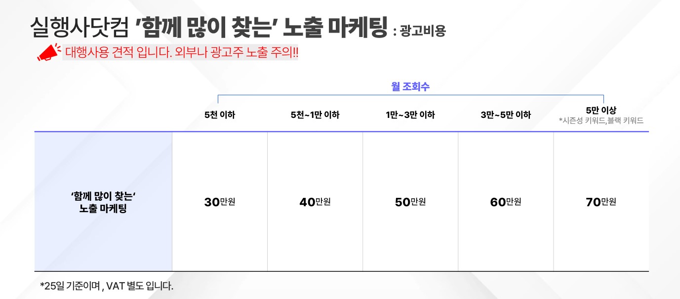 광고 비용 또한 실행사 비용으로 최저가에 진행합니다.